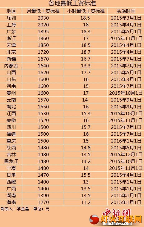 28地区上调最低工资标准 进入12月以来,吉林、宁夏、重庆等地宣布上调最低工资标准。其中,吉林第一档地区最低工资标准由1320元/月调整为1480元/月;宁夏一类区最低工资标准由1300元/月调整为1480元/月;重庆第一档地区最低工资标准由1250元/月调整为1500元/月。 随着上述三个地区最低工资标准的上调,据中新网记者不完全统计,进入2015年以来,全国已有上海、深圳、北京等28个地区宣布上调最低工资标准,仅剩下辽宁、河北、青海、江苏4地未进行调整。 调整之后,深圳、上海两地月最低工资标准分别为2030元、2020元,最低工资标准超过2000元大关。而小时最低工资标准最高的依然是北京,达到18.7元。 上调地区数量远超去年 中新网记者注意到,虽然今年以来中国经济下行压力依然较大,但上调最低工资标准的地区却大幅增加,其数量已经远超去年全年。人社部的数据显示,2014年全国共有19个地区调整了最低工资标准。 中国人民大学财政金融学院副院长赵锡军此前对中新网记者表示,在当前经济下行压力不减的情况下,上调最低工资标准的地区反而增加,表明各地更加注重居民收入等民生指标。 “收入是民生之源,上调最低工资标准有利于提高低收入人群的生活水平,一定程度上促进内需和消费。” 赵锡军表示。 辽宁超两年仍未调整 根据《最低工资规定》,各地区的最低工资标准每两年至少要调整一次。记者注意到,在还未宣布调整的辽宁、河北、青海、江苏4地中,辽宁最低工资标准已两年多未调整。 人社部数据显示,辽宁上一次调整最低工资标准在2013年7月1日,最高档月最低工资标准为1300元。 河北上一次调整最低工资标准是在2014年12月1日,青海上一次调整是在2014年5月1日,江苏上一次调整是在2014年11月1日。需要指出的是,今年江苏曾表示下半年将适时适度调整最低工资标准。 | |