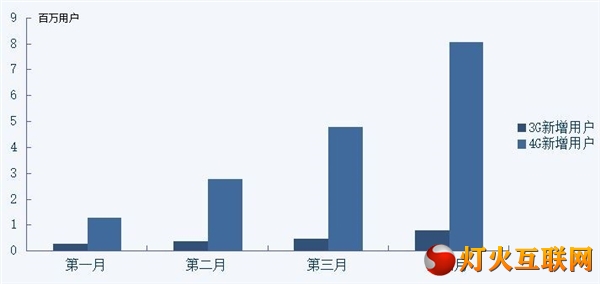 ![]() | 根据相关统计数据,在正式启用4g套餐的前四个月(2 月到 5 月),中国移动新增了 800 多万 4G 用户。而五年前,中国移动花了 15 个月才获得了同样数量的 3G 用户。4G 用户的普及速度是 3G 时的 4 倍。即使考虑到 5 年内中国移动的用户基数增长,其 4G 用户的渗透速度也是 3G 用户的两倍以上。