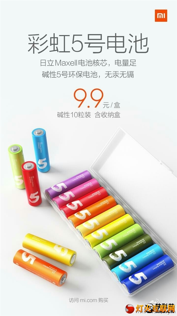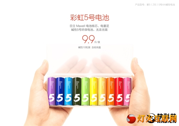 ![]() | 如之前的猜测,小米“彩虹新品”正式公布——彩虹5号电池。每盒十节,售价9.9元,每节只要9毛9,送收纳盒。
