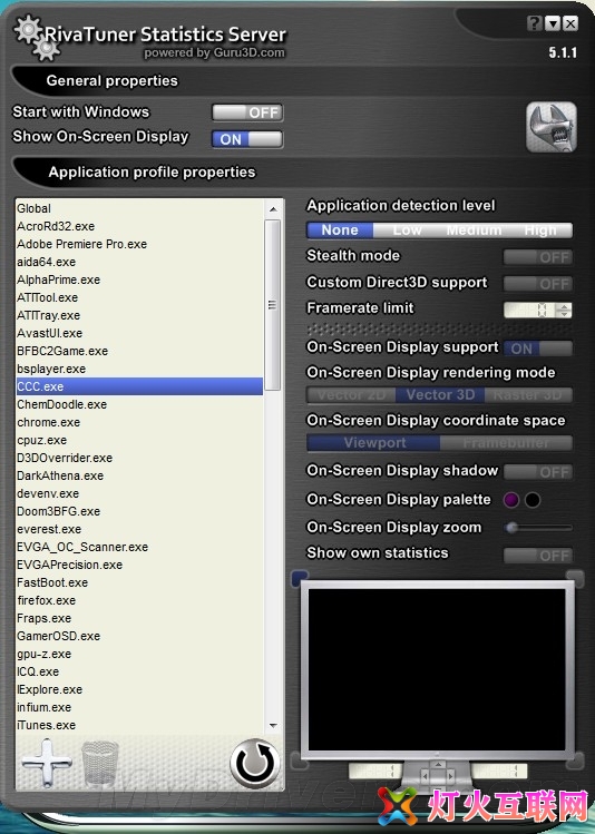 ![]() | Rivatuner Statistics Server简称RTSS原本是RivaTuner这个老牌超频软件的一个辅助程序,主要用来进行帧率检测、屏幕显示(OSD)以及提供高性能视频录制服务。现在常用的微星Afterburner、EVGA Precision等几款基于Rivatuner核心的显卡优化软件都在使用RTSS。 日前,Guru3d网站放出了最新的RTSS 5.1.1版,主要更新如下: — 改善配置文件列表的键盘导航功能。 — 改善安装/卸载之后的文件锁定重启通知。 — 现在RivaTuner Statistics Server在系统重启之后会防止程序可能会延迟锁定的问题。 — 在安装过程中更新文件方案。 — 为Direct3D7和DirectDraw全屏应用程序增加屏幕录制和视频拍摄支持。(窗口模式下暂不支持) — 现在在应用程序托盘图标中可以显示内部版本号。 — 支持第三方翻译的本地安装程序文件,配置路径为:\SDK\Localization\Installer folder。 — 更新意大利语支持。 下载地址: http://drivers.mydrivers.com/drivers/462-185154 | |