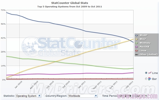 ![]() | 根据市场调研机构StatCounter的最新统计数据,Windows 7全球市场份额已经超过了Windows XP,取代XP成为了全球用户最多的一款操作系统。 截止到10月份,Windows 7全球市场份额达到了41%,而Windows XP则不足40%。 如今Windows 8也正在朝着公开测试阶段前进,预计明年上半年就会发布,但是相信Windows 7并不会因为Windows 8的发布受到特别大的冲击,至少在未来一年内Windows 7仍会统治操作系统市场。 | |