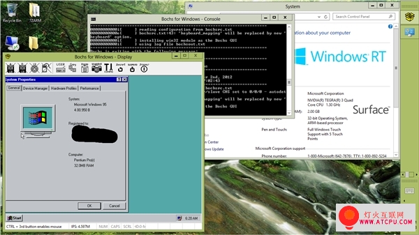 ![]() | 黑客们对Windows RT都颇感兴趣,除了几日前宣布实现了对WindowsRT越狱的团队外,今天XDA论坛的一位Netham45的黑客也表示,他已成功将PuTTy、TightVNC和BOCHS移植到了WindowsRT上,这也就意味着Windows 95可以在Windows RT上运行。 Windows 95在WindowsRT上运行良好,除了网络无法使用外,大多数功能都可正常使用。将Windows程序导入到ARM架构上非常麻烦,需要在VisualStudio 2012中加载和重建应用(仅限.net 4.5),由于WindowsRT中缺失很多Windows库,就算将一些程序移植到ARM平台上它们也无法运行,因此并不建议普通用户进行越狱。 几日前,一个安全研究团队Surfsec找到了一种方法可以在WindowsRT上运行未获签名的桌面应用,简单的说就是通过修改系统内核的一个特定区域从而实现最低签名等级,让非WindowsStore应用程序也能安装在ARM设备上,包括之前微软曾限制的桌面应用程序。微软对此回应称,这种越狱并不会给WindowsRT用户带来任何安全威胁,而且操作起来十分复杂,普通用户无法实现。 | |