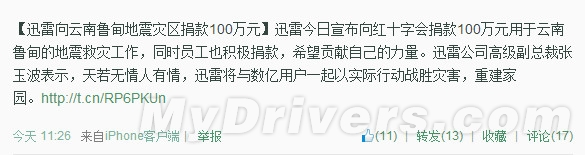 迅雷公司高级副总裁张玉波表示,天若无情人有情,迅雷公司将积极发挥平台的作用,与数亿用户一起,以实际行动携手同胞,战胜灾害,重建家园。