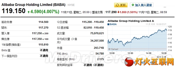 截至11月10日美股收盘,阿里巴巴股价上涨4.01%至119.15美元/股,乘以25.13亿总股本,目前阿里巴巴市值已经达到2994.27亿美元。若以6.15的人民币兑美元汇率计算,阿里巴巴市值为18414.76亿元人民币。 而统计数据显示,截至11月10日,中国上市公司市值排名前三位分别是中国石油1.44万亿元、工商银行1.29万亿元、建设银行1.05万亿元。 也就是说,阿里巴巴的总市值已经超越中国石油,成为中国上市公司中市值最高的上市公司。 另一方面,目前美股市场中市值前三名分别为苹果6562.08亿美元、埃克森美孚的4082.27亿美元、google 3713.95亿美元。以阿里巴巴目前的总市值,其已超过富国银行的2809.93亿美元,位列全球第七名。 早在阿里巴巴上市之初,就有分析人士担心庞大的市值将使得阿里巴巴成为“美版”中国石油——市值过于庞大,以致股价低波动,不过从目前情况来看,阿里巴巴股价的走势早已打破这一现状。 自9月19日上市,阿里巴巴股价已经92.07美元涨至目前的119.15美元,涨幅达到29.41%。从目前情况来看,阿里巴巴股价仍有望继续目前的势头。 从分析师层面来看,截至目前,共有10加机构发布相关研报,其中7家给予“买入”评级,2家给予“跑赢大盘”评级,1家给予“增持”评级。而11月以来,摩根大通、摩根士丹利都上调阿里巴巴目标分别指122美元、118美元,太平洋皇冠给予的初始目标价则为127美元。 而从期权角度来看,目前阿里巴巴整体看涨期权合约量远高于看跌期权量,而股价上方的看涨期权未平仓量相比之下仓位最大。这也表明投资者短期内依旧看好阿里巴巴股价上涨趋势。 再从基本面来看,双十一目前的态势,势必将对美化阿里巴巴的财报起到积极作用,而阿里巴巴最新公布的第三财季报告也颇为靓丽。 其中数据显示,2014年第三季度,阿里巴巴集团收入达到人民币168.29亿元,同比增长53.7%;核心业务运营利润达84.93亿元;调整后的净利润为68.08亿元。 报告期内,阿里巴巴移动端的活跃用户达到2.17亿,比上季度末的1.88亿新增了2900万。移动端营收达到37.19亿元,同比增长高达1020.2%,势头十分迅猛。今年第三季度,其来自移动端的GMV(总交易额)达到1990.54亿元,同比增长263%。移动端GMV占整体交易额的比例达到35.8%,这一比例较2013年同期提升了21个百分点,比2014年第二季度提高3个百分点。 因此分析人士对记者表示,虽然双十一已经过去,利好出尽对阿里巴巴不利,但是从目前股价形态来看,阿里巴巴股价仍有望走强,毕竟阿里巴巴的业绩是其股价最好的支撑。该分析人士依旧看好阿里巴巴的后续前景。 | |