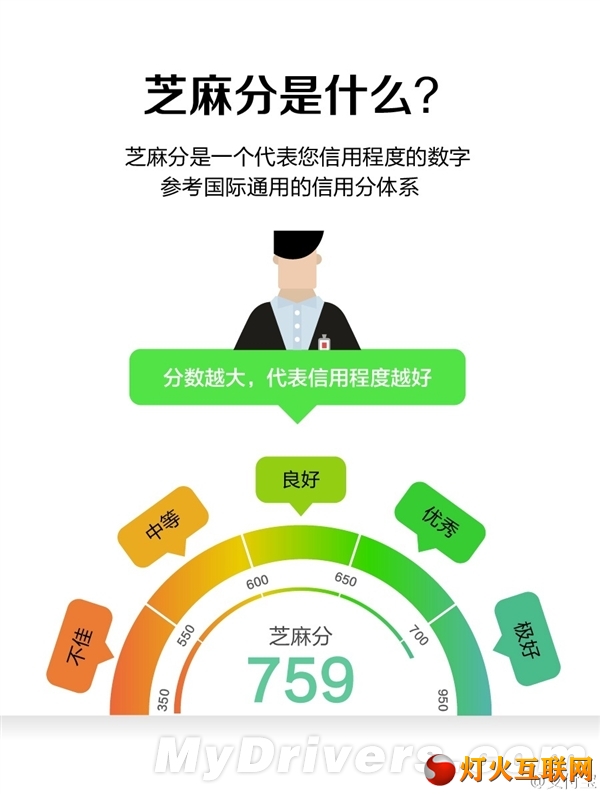 这是中国有史以来首个个人信用评分,根据用户的身份特征、行为偏好、信用历史、履约能力和人脉关系五个维度来评估。