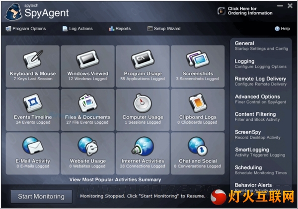 摄像头安全iSpy iSpy可以说是目前市面上最优秀、功能最丰富的监控软件之一。这款免费软件可使用计算机的摄像头和麦克风来识别周围的动作和声音,即便你出门在外,它也能自动追踪动作或拍摄视频/照片。 经过简单的初次设置,iSpy就可以利用摄像头进行环境监控,并开启动作检测功能。它可将拍摄的视频和图像保存在任意文件夹,或是云端存储服务。当有可疑动作发生时,它还能通过邮件或短信向你发出提醒。 不过iSpy也存在一个缺点,那就是它只能在当前登入的系统账户当中工作。也就是说,如果使用其他账户,该软件就不会自动运行。想要解决这个问题,你可以在离家之前登入自己的账户,然后命令软件进入无声启动模式,这样一来,其他人就不会察觉到它的存在。 Skype的保姆摄像头功能 虽然这并不是Skype的标准功能,但经过一些简单的设置,任何人都可以创建自己的保姆摄像头。具体的操作方式如下。 首先,你需要为该功能创建第二Skype账户,然后将其设置成主账户,以便在开启Skype后登入。此外,你还应该将软件设置成开机启动。 第二账户建立完成之后,登入该账户并将你的主账户添加到联系人列表当中,点击工具>隐私来获取保姆摄像头账户的隐私选项,并勾选仅接受来自联系人列表的通话。此后,你还需要进入选项菜单,选择通话标签,点击显示高级选项,勾选“自动接听来电”和“通话时自动开启视频”。 完成这些设置之后,你就可以随时随地拨打该保姆摄像头账户,后者会自动接听来电并开启视频功能,以供你检查电脑前的情况。 活动追踪器和按键记录器Spytech SpyAgent 如果你的计算机没有摄像头,或是你想要了解到更加详细的计算机使用情况,这款名为Spytech SpyAgent的监控软件值得一试。 这款软件售价70美元(约合人民币438元),虽然价格有些高,但它可以说是目前最为全面、功能最为丰富的计算机监控软件。安装之后,软件会记录计算机的所有按键记录、浏览器历史和搜索记录,甚至是每一封接收和发送的邮件。 而这款软件最棒的功能是隐身模式,开启之后,任何人都不会察觉到它的存在。此外,它还可以组建特定的网站、程序或游戏的运行,并将行为提醒直接发送到所有者的邮箱当中。 ActivTrak 如果你想要尝试更加廉价的解决方案,ActivTrak是个不错的选择。这款软件完全免费,虽然其定位主要是面向想要监控员工网络行为的雇主,但用在家用计算机上同样可行。 安装完成之后,ActivTrak可以监控网页访问、应用使用、以及不同软件的运行时间。它甚至还能在计算机被使用时进行截屏,并将其存储在云端。虽然并不是最全面的监控软件,但这款免费软件同样值得尝试。 Kidlogger Kidlogger不仅自称是最深度的按键记录程序,它免费+收费的模式也颇具吸引力。 这款软件提供了Windows和Mac两个版本,安装之后,你就可以立刻对计算机的按键信息、浏览器记录和软件使用进行追踪。此外,Kidlogger还能周期性地进行自动截屏,或是在视频聊天时进行截图。 | |